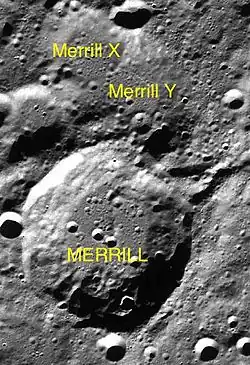 - ↑ Кратер Меррилл на карте LAC-9. Дата обращения: 5 июля 2020. Архивировано 27 ноября 2020 года.