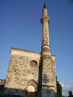 В 1592 году церковь была обращена турками в мечеть. Готическая колокольня использовалась как минарет до 1863 года, когда старая башня была снесена и заменена на новый минарет.