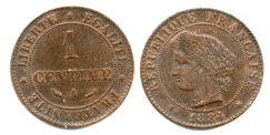 | 1 сантим 1872. Дизайнер Эжен Одине | ||||||||||||