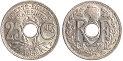 | 25 сантимов 1937. Дизайнер Эдмон-Эмиль Линдайё | ||||||||||||