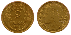 | 2 франка 1931. Дизайнер Пьер Александр Морлон | ||||||||||||