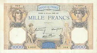 1000 франков | 1940 | 19 мая 1944 | 4 июня 1945 | 15 июня 1945 |