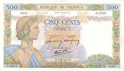 500 франков | 1939 | 25 февраля 1941 | 4 мая 1945 | 15 мая 1945 |