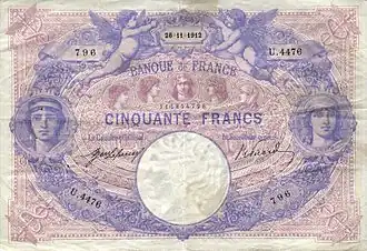 50 франков | 1933 | 15 марта 1935 | 16 декабря 1943 | 15 июня 1945 |