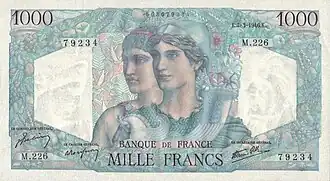 1000 франков | 1945 | 2 июля 1945 | 6 декабря 1955 | 1 апреля 1968 |