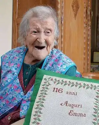 - ↑ http://jyllands-posten.dk/international/europa/ECE9509372/verdens-aeldste-italieneren-emma-morano-er-doed-117-aar/