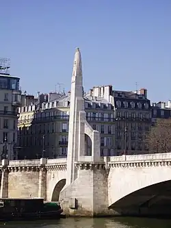 На мосту установлена статуя покровительницы Парижа Святой Женевьевы. Скульптор — Поль Ландовский.