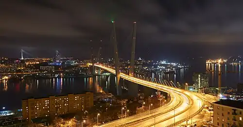 - ↑ Мост через бухту Золотой Рог открыт. vladtime.ru (11 августа 2012). — Строительству моста в своё время мешали русско-японская война, Первая мировая война, революция, перестройка и развал СССР. Дата обращения: 14 августа 2012. Архивировано из оригинала 3 июня 2013 года.