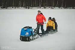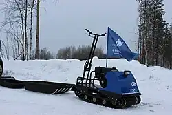 Вместо саней-волокуш к мотобуксировщику могут быть прицеплены сани на широких полозьях. Водитель управляет сидя «верхом» на скамейке, сзади закреплён груз или размещаются ещё 1-3 человека.