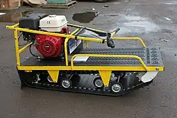 От сцепления или вариатора крутящий момент на ведущую звёздочку гусеничного движителя передаётся цепной передачей, закрытой защитным кожухом. Ряд производителей между вариатором и ведущей звездой устанавливают реверс (заднюю передачу).
