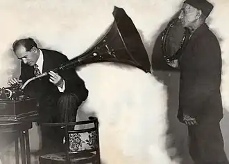 Первая грампластинка, на которую были записаны мугамы, увидела свет в 1906 году. На неё были записаны мугамы в исполнении Джаббара Карьягдыоглы. Выпустило эту грампластинку английское акционерное общество «Граммофон» в Риге[56]. В период с 1906 по 1915 годы сразу несколько европейских фирм грамзаписи, среди которых были французская компания «Братьев Пате», германское АО «Спорт-Рекорд», российские «Монарх-Рекорд», «Граммофон-Рекорд», «Концерт-Рекорд», «Премьер-Рекорд» и «Экстрафон», выпустили десятки пластинок с записями азербайджанских мугамов, теснифов и рэнгов[прим. 5][57]. В Киеве, Риге, Варшаве, Петербурге, Москве, Тифлисе были записаны мугамы в исполнении Алескера Абдуллаева, Сеида Мирбабаева, Ислама Абдуллаева, Мамеда Фарзалиева, Кечачи оглы Мухаммеда, Меджида Бейбутова, Сеида Шушинского и др. Певцам в основном аккомпанировали тарист Курбан Пиримов и кеманчист Саша Оганезашвили[56].