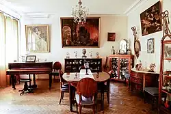 В гостиной висят картины зарубежных художников, среди которых портрет жены Образцова Ольги Шагановой, работы Андрея Гончарова. Коллекцию необычных вещей пополняют механические театры-автоматы, музыкальные инструменты и редкие книги с автографами режиссёра[13].