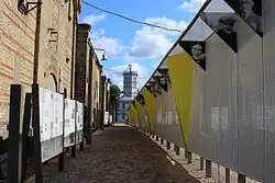 Вторая часть экспозиции посвящена проблематике Холокоста. В символическом плане она выполнена в виде длинного узкого прохода — слева проход обрамляют стенды с информацией и фотографиями, примыкающие к изгороди, которую опоясывает колючая проволока, а справа приводятся в ряд восстановленные в ходе многолетней кропотливой работы имена и фамилии более 70 000 человек, ставших жертвой Холокоста в республике. Значимым компонентом экспозиции является отображение крайне тенденциозной антибольшевистской и антисемитской пропаганды, свирепствовавшей в пронацистски ориентированных бумажных СМИ. Из примеров можно назвать антисемитские карикатуры на Сталина (!), а также коллективная фотография «пирующих» правителей Советской Латвии — микробиолога Августа Кирхенштейна, писателя-романиста Вилиса Лациса, первого секретаря ЦК КПЛ Яна Калнберзина и наркома внутренних дел Латвийской ССР Альфонса Новикса, которая контрастирует с фотографией истерзанных и расстрелянных тел латышей на внутреннем дворе Центральной тюрьмы Матиса. Также в экспозиции представлены изображения «евреев — сотрудников НКВД» (С. Шустина) и «евреев — инструкторов, обучающих латышского крестьянина обращаться с сельскохозяйственной техникой», а также плакаты и листовки, фотографии из гетто, снабжённые провокационными надписями и комментариями (фото из пронацистской газеты «Тевия» («Отчизна») с изображением евреев, спорящих по поводу очереди у магазина в Рижском гетто с провокационным комментарием под ней).