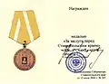 См. «Правила награждения медалью „За доблестный труд“ I степени». ![]() |