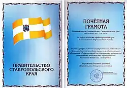 - ↑ Закон Ставропольского края от 30 июля 2014 года № 78-кз «О наградах в Ставропольском крае». Дата обращения: 23 ноября 2022. Архивировано 22 апреля 2023 года.