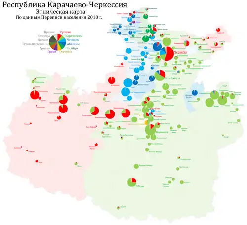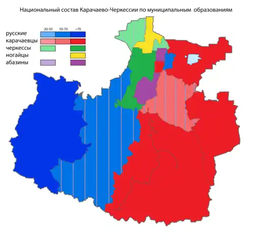 | Карачаевцы | 67 830 | 24,40 % | 109 196 | 29,74 % | 129 449 | 31,19 % | 169 198 | 38,50 % | 38,51 % | 194 324 | 40,67 % | 40,97 % | 205 578 | 43,75 % | 44,38 % |