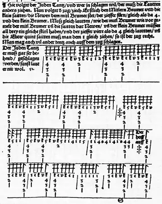 Оригинальный текст (нем.)Der Juden Tanz, er muß gar ser behend geschlagen werden, sonst laut er nit wol.
