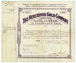 Нерчинское золотопромышленное общество с ограниченной ответственностью, учрежденное в 1901 г. в Лондоне с капиталом в 1,1 млн. фунтов стерлингов[1], оборудовавшее свою фабрику на Ключевском руднике в Забайкальской области, одним из первых в Российской империи применило методы дражной добычи золотой руды. Во многом благодаря этой инновации предприятие добилось наилучших результатов в регионе, что в итоге привело к размещению акций компании в котировальном листе Лондонской биржи[2].
