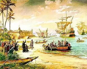 Нобрега прибыл в капитанию Баия 29 марта 1549 года в сопровождении пяти товарищей по ордену (отцы Леонарду Нуниш, Жуан ди Ашпилкуэта Наварру, Антониу Пириш и братья Висенти Родригиш и Диогу Жакоми). После того, как генерал-губернатор провозгласил основание столицы колонии — города Сан-Салвадор да Баия ди Тодуз-уш-Сантуш (порт. «Святой Спаситель Залива Всех Святых»[4]), — была отслужена первая месса. Вернувшись после неё к товарищам, Нобрега произнёс следующие слова: «Сия земля есть наше дело»[5].