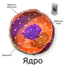 3D-модель расположения ядрышка (фиолетовое) относительно ядерной оболочки