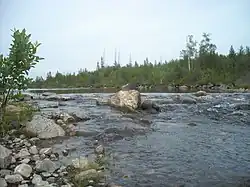 Берёт начало на восточном склоне хребта Мончетундра на высоте свыше 500 м над уровнем моря. В верхнем течении протекает по лесной, местами болотистой местности. Проходит через озёра Кумужье и Нюдъявр. Впадает в губу Мончегуба озера Имандра на высоте 127,5 м над уровнем моря[3]. В нижней части река проходит через промышленные и жилые районы Мончегорска. Через реку перекинуто несколько автомобильных (в том числе на трассе Кола) и один железнодорожный мост.
