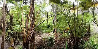 В условиях отсутствия засухи лес Олаа представляет собой дождевой тропический лес состоящий в основном из древовидных папоротников (Циботиум), в верхнеи ярусе кроны Охиа и Акация коа[2].