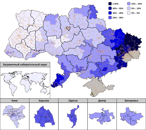 На местных выборах на Украине 2020 ОПЗЖ победила в шести областях[48], а кандидат в мэры Киева от партии Александр Попов занял второе место, уступив победившему в первом туре Виталию Кличко[49]. Также, криворожский представитель партии победил во втором туре своего соперника от Слуги народа[50].