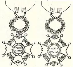 Реверс знака подобен аверсу за исключением центрального медальона: в центре на матированной поверхности надпись в две строки «MERITO CIVIL» для награждённых за гражданские заслуги, либо «MERITO MILITAR», «MERITO RELICIOSO» для награждённых за военные, либо религиозные заслуги. На кайме надпись золотыми буквами: «REPUBLICA DE HONDURAS».