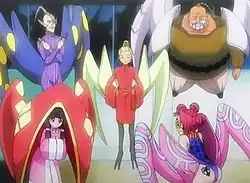 - Фея с ярко-розовыми волосами, жёлтыми защитными очками и в синем купальнике. Вместе с Байгоном и Хинагику создает щит.