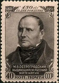 Михаи́л Васи́льевич Острогра́дский (рус. дореф. Михаилъ Васильевичъ Остроградскій; 12 сентября [24 сентября] 1801, деревня Пашеновка, Кобелякский уезд, Полтавская губерния — 20 декабря 1861 [1 января 1862], Полтава) — российский[4][5][6][7][8] математик и механик, академик Санкт-Петербургской академии наук с 1830 года, признанный лидер математиков Российской империи в 1830—1860-е годы[9]. Ученик Т. Ф. Осиповского.