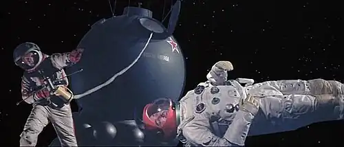 Советский космический корабль очень напоминал «Восток»[33]. Американский крылатый космический аппарат X-RV соответствовал проекту X-24 и был в фильме запущен на околоземную орбиту при помощи ракеты носителя Titan IIIC[5].
