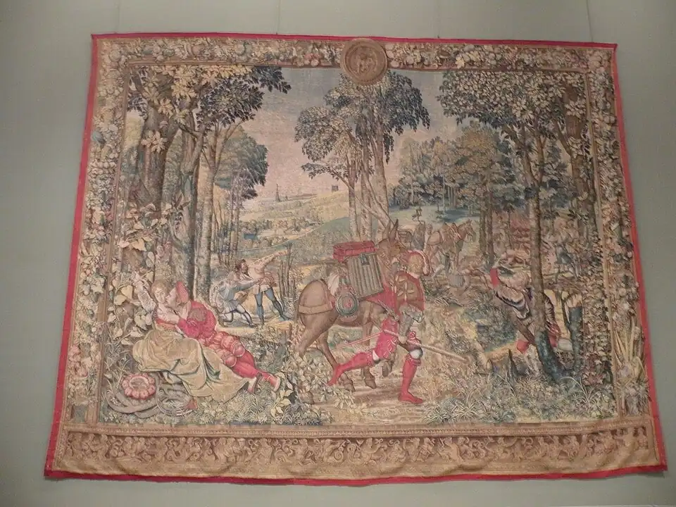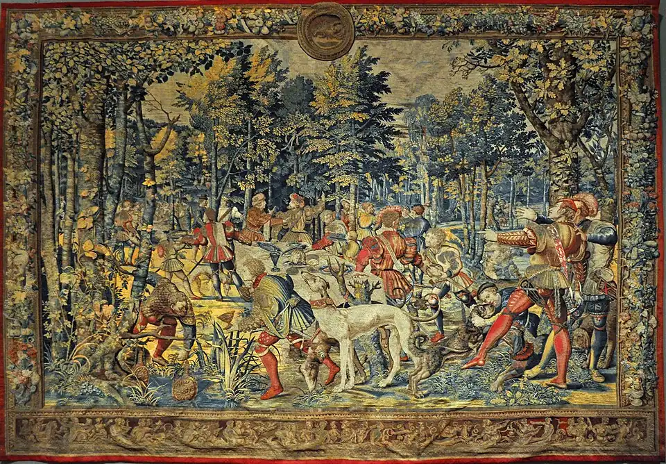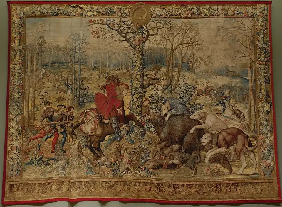 Правого охотника кураторы Лувра идентифицируют как императора Карла V. Во время создания серии Карл V был также и герцогом Брабантским — лес Суаньи принадлежал ему, и он часто в нём охотился.