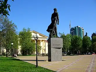 До 1870-х на месте расположения памятника располагалось кладбище Сочинской крепости[1]. Памятник сооружён к 75-летию писателя в 1979 по проекту ленинградских скульпторов В. Э. Горевого, С. А. Кубасова и архитектора В. Б. Бухаева. Высота памятника — 10 м.