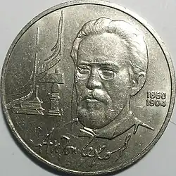Банк России 28 декабря 2009 года выпустил четыре памятные монеты разного достоинства, посвящённые 150-летию со дня рождения А. П. Чехова (приведены только реверсы):