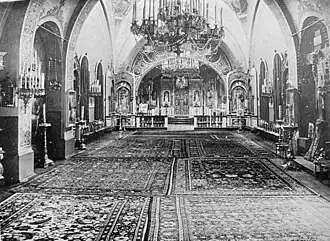 3 сентября 1895 года митрополит Палладий (Раев) освятил обновлённый храм, посвящённый спасению Цесаревича при покушении в Оцу. Прекрасную дарохранительницу подарил при этом Я. И. Шипов. Позже интерьер был расписан. Своему храму выпускник А. Жмакин пожертвовал крест с частицами Животворящего Креста, Гроба Господня и разных святых. Это была в нём единственная святыня.