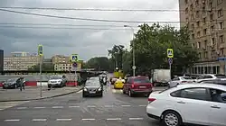 - Белорусский вокзал — южнее улицы, на площади Белорусского Вокзала