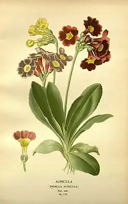 - 1 2 3 4 Primula auricula (англ.). Oxford University Plants 400. Department of Plant Sciences, University of Oxford. Дата обращения: 5 апреля 2023. Архивировано 5 апреля 2023 года.