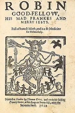 Пак на титульном листе английской книги «Безумные проказы и весёлые шутки Робина Славного Малого» (1639)