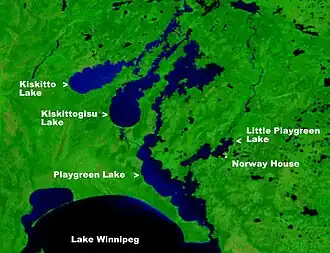 Ранее через озеро протекала река Нельсон (бассейн Гудзонова залива), ныне Плейгрин является частью водохранилища Виннипег.