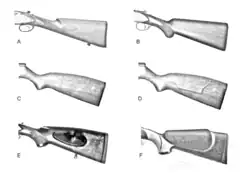 В настоящее время большая часть оружия поставляется с прикладами, изготовленными из металла и/или пластика, в прошлом обычно они изготавливались из древесины, как правило — ореха. Более дешевые винтовки имели приклады из бука.