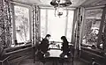 Наташа Плигина-Камионская и профессор Святослав Федоров у него на даче играют в шахматы. Фото Юрия Рыбчинского, конец 1970-х.