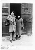 Наташа и Юра у двери дома 5 по Б.Сергиевскому переулку. Автор не установлен, 1959 г.