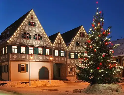 Отражение церкви Святого Михаила в окне церкви Святого Ансгария.