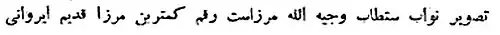 Портрет его превосходительства благородного Веджиуллы Мирзы. Написал нижайший Мирза Кадым Эривани.