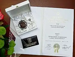 - ↑ Почётными гражданами Санкт-Петербурга впервые стали сразу три человека. Законодательное Собрание Санкт-Петербурга (22 мая 2024).