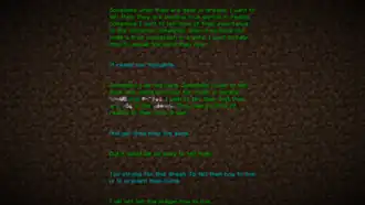- ↑ notch. Are YOU a talented writer (famous is a plus ;D) who wants to write a silly over-the-top out-of-nowhere text for when you win Minecraft? (англ.). Twitter (16 октября 2011). Дата обращения: 12 января 2024. Архивировано из оригинала 31 марта 2019 года.