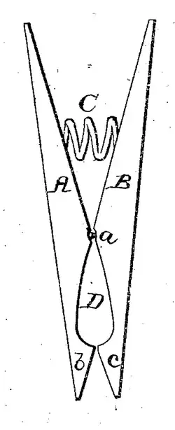Современная конструкция, из двух подпружиненных частей, появилась в 1853 году, когда американский изобретатель Д. М. Смит (англ. David M. Smith) получил патент 10,163. Эта новая конструкция, способная выдержать бо́льшую нагрузку и меньше повреждавшая бельё, оказалась популярной среди изобретателей (146 патентов только в США до 1887 года[2])[1]. В 1887 году С. Е. Мур (англ. Solon E. Moore, патент 365,755) внёс важное усовершенствование: свёрнутая в цилиндр пружина стала играть также и роль оси; этот дизайн практически не изменился до настоящего времени[2].
