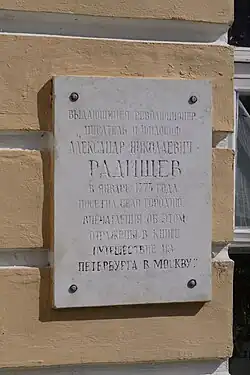 На здании — мемориальная доска в честь пребывания в Городне А. Н. Радищева.
