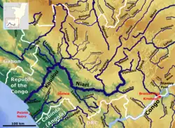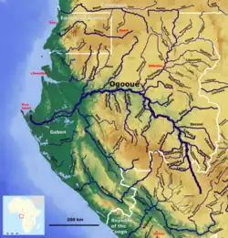 Реки в бассейне реки Огове в Конго (вверху справа и внизу в центре)