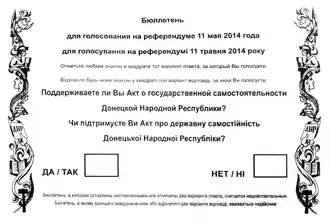 бюллетень, использовавшийся для голосования на общеобластном референдуме ДНР | |